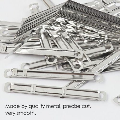 The Metal/Steel Paper Fastener is a sturdy and reliable tool for organizing loose documents. Made from strong metal/steel, it slips through punched holes in paper and expands to keep sheets securely fastened without tearing or slipping. Ideal for reports, presentations, school projects, and office paperwork, it keeps multiple pages neatly together while still allowing them to be turned easily. The robust construction ensures long-lasting use, and the simple design makes it quick and easy to add or remove sheets as needed. Practical and reusable, this paper fastener is a versatile addition to any workspace where paper organization and durability matter.